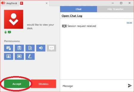 Vajuta "Accept" sissetulevale ühendusele: